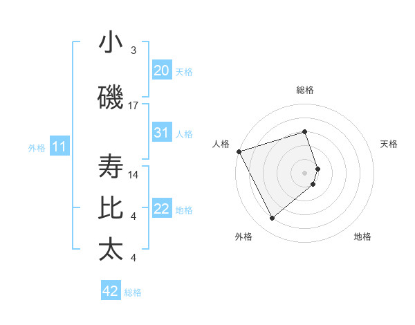 小磯 寿比太さんの総格は42画の3点!
