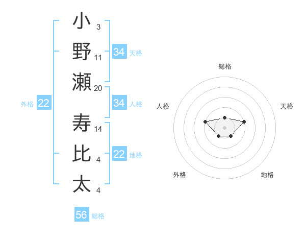 小野瀬 寿比太さんを姓名の画数から五運を鑑定