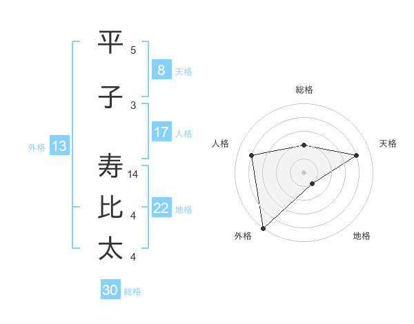 平子 寿比太さんを姓名の画数から五運を鑑定