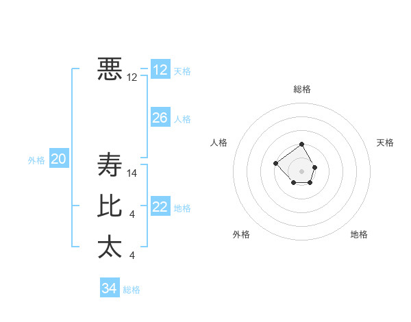 悪 寿比太さんの総格は34画の2点!