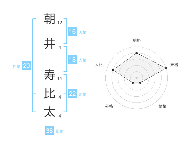 朝井 寿比太さんを姓名の画数から五運を鑑定