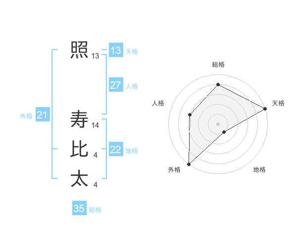 照 寿比太さんの天格は13画の5点!