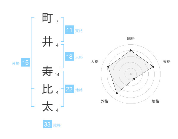 町井 寿比太さんの総格は33画の4点!
