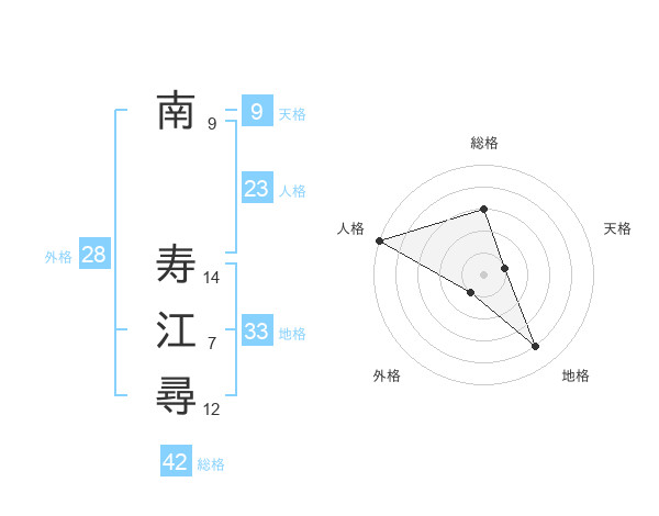 南 寿江尋さんを姓名の画数から五運を鑑定