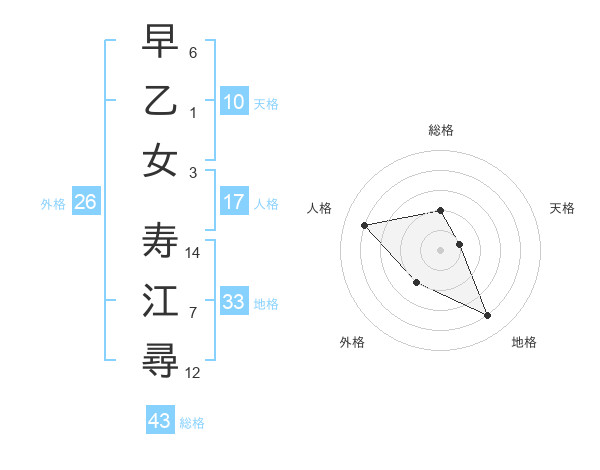 早乙女 寿江尋さんの総格は43画の2点!