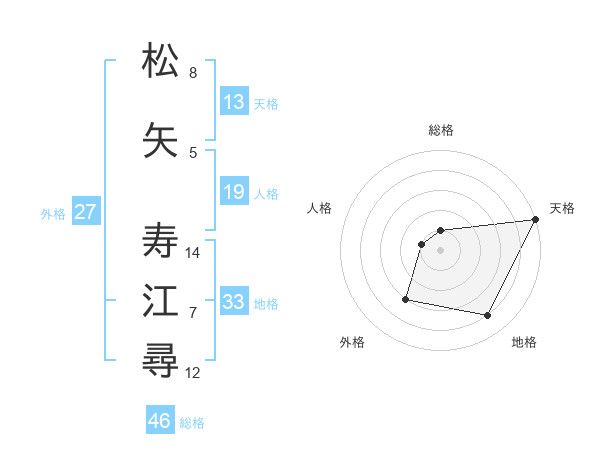 松矢 寿江尋さんの天格は13画の5点!