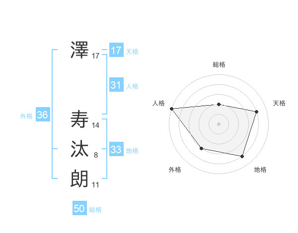 澤 寿汰朗さんを姓名の画数から五運を鑑定
