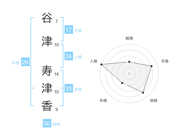 谷津 寿津香さんの天格は17画の4点!