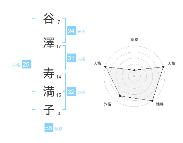 谷澤 寿満子さんの地格は32画の5点!