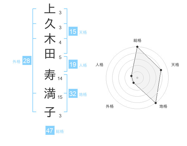 上久木田 寿満子さんの総格は47画の5点