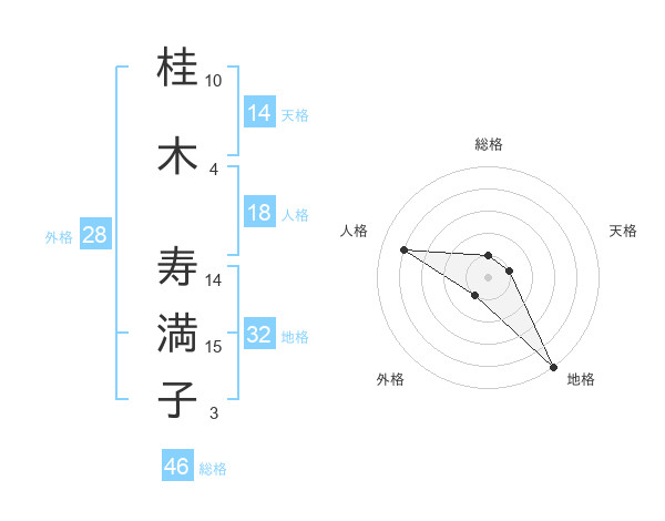 桂木 寿満子さんを姓名の画数から五運を鑑定