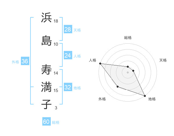 浜島 寿満子さんの地格は32画の5点!