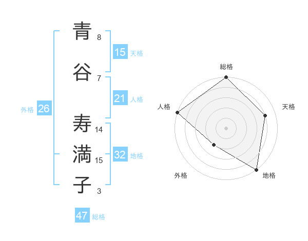 青谷 寿満子さんの総格は47画の5点!