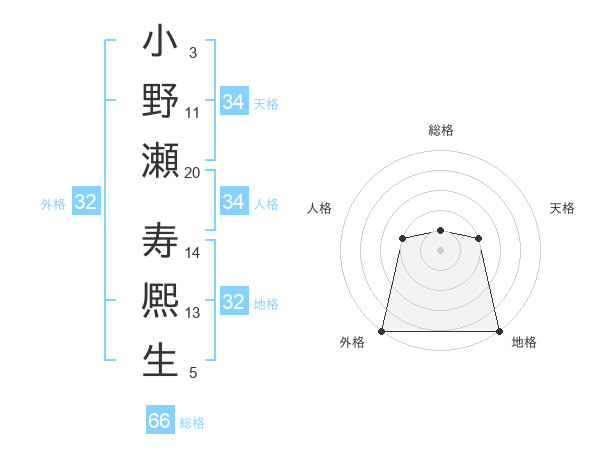 小野瀬 寿熈生さんを姓名の画数から五運を鑑定