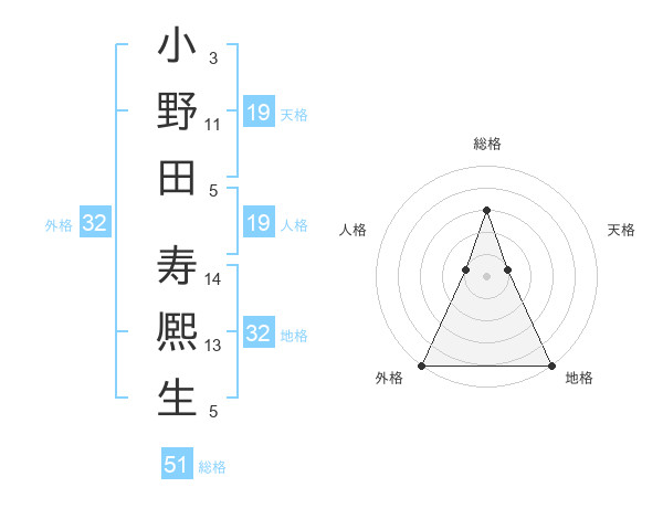 小野田 寿熈生さんを姓名の画数から五運を鑑定