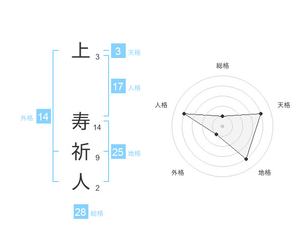 上 寿祈人さんの総格は28画の1点!