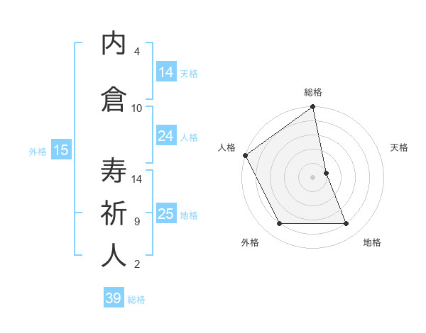 内倉 寿祈人さんの天格は14画の1点!