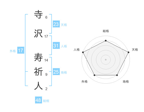 寺沢 寿祈人さんの外格は17画の4点!