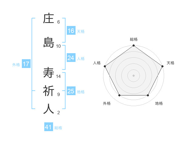 庄島 寿祈人さんを姓名の画数から五運を鑑定