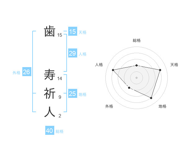 歯 寿祈人さんの総格は40画の2点!