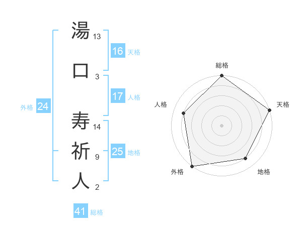 湯口 寿祈人さんの総格は41画の5点!