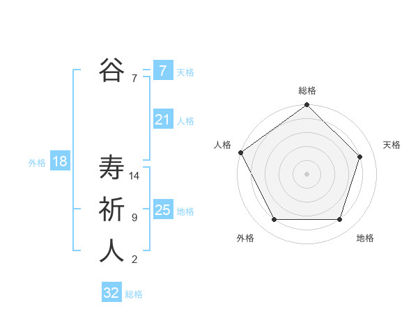 谷 寿祈人さんの総格は32画の5点!