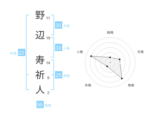 野辺 寿祈人さんの総格は55画の1点!