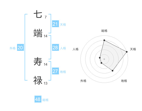 七端 寿禄さんの天格は21画の5点!
