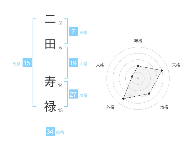 二田 寿禄さんの総格は34画の2点!