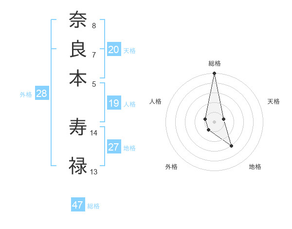 奈良本 寿禄さんの総格は47画の5点!
