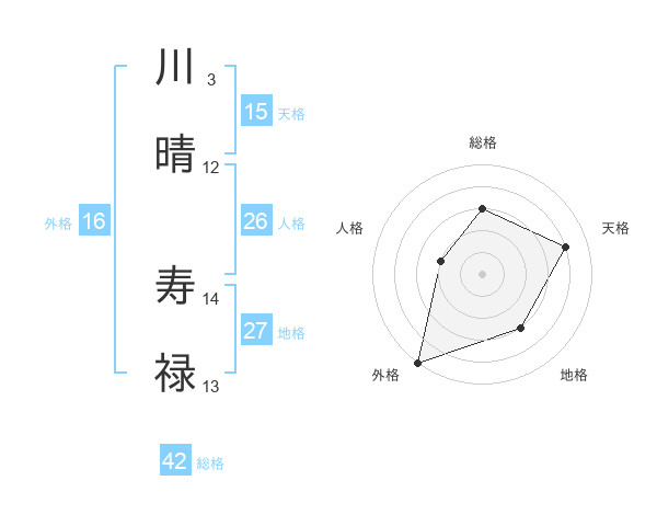 川晴 寿禄さんの地格は27画の3点!