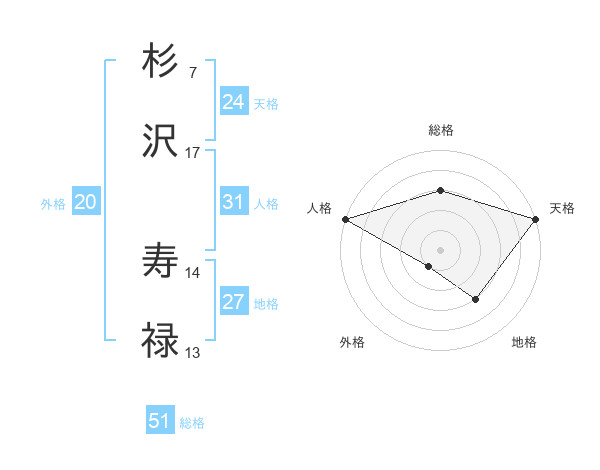 杉沢 寿禄さんを姓名の画数から五運を鑑定