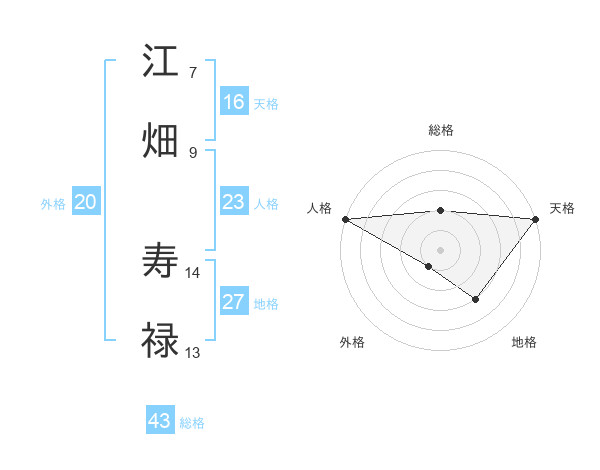 江畑 寿禄さんの総格は43画の2点!