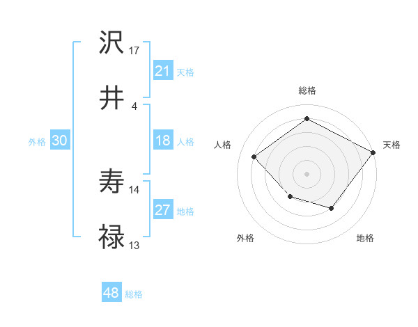 沢井 寿禄さんの天格は21画の5点!