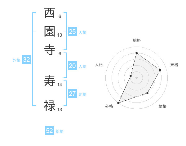 西園寺 寿禄さんを姓名の画数から五運を鑑定