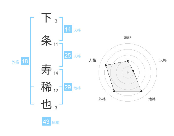 下条 寿稀也さんを姓名の画数から五運を鑑定