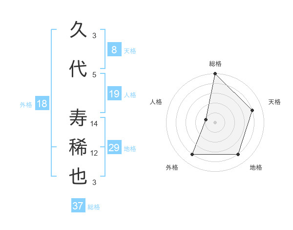 久代 寿稀也さんを姓名の画数から五運を鑑定