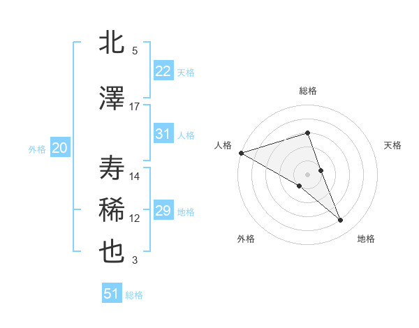 北澤 寿稀也さんを姓名の画数から五運を鑑定