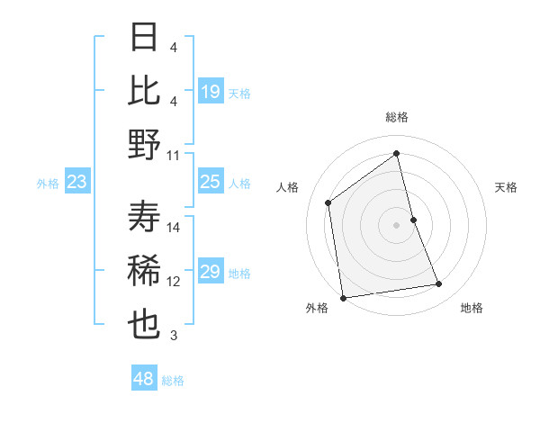 日比野 寿稀也さんの外格は23画の5点!