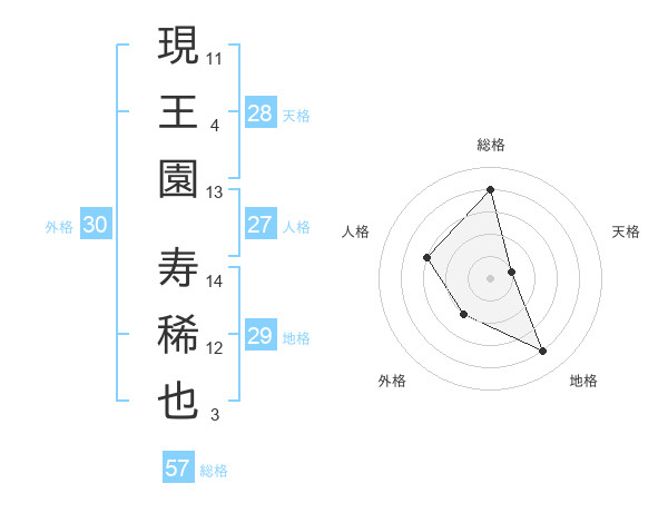 現王園 寿稀也さんを姓名の画数から五運を鑑定
