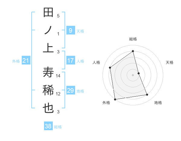 田ノ上 寿稀也さんを姓名の画数から五運を鑑定