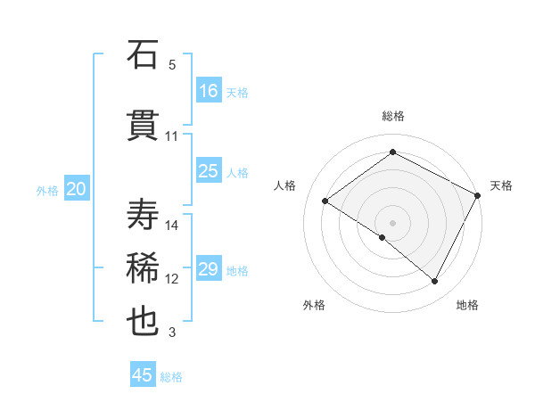石貫 寿稀也さんを姓名の画数から五運を鑑定