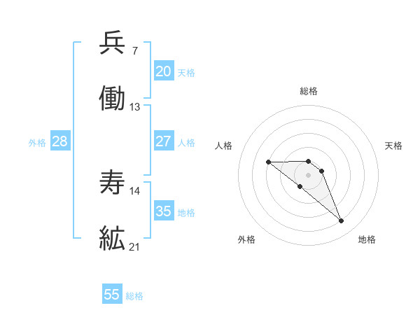 兵働 寿絋さんの総格は55画の1点!