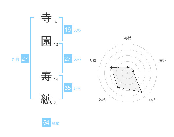 寺園 寿絋さんの総格は54画の1点!