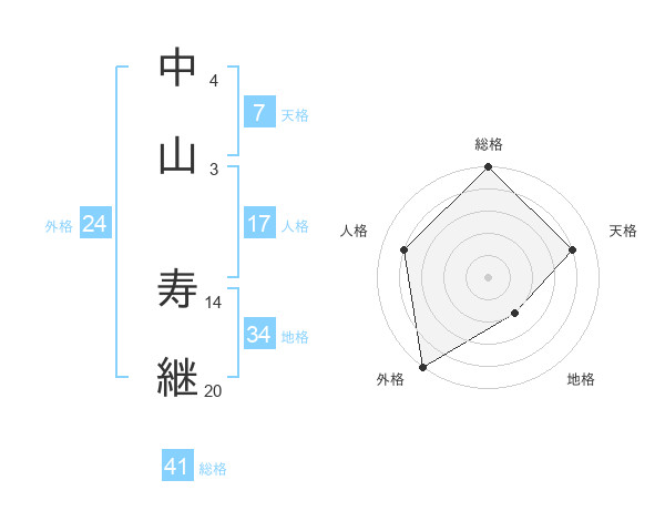 中山 寿継さんの総格は41画の5点!
