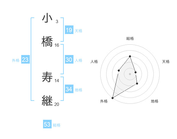 小橋 寿継さんを姓名の画数から五運を鑑定