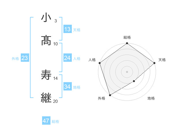 小髙 寿継さんの総格は47画の5点!