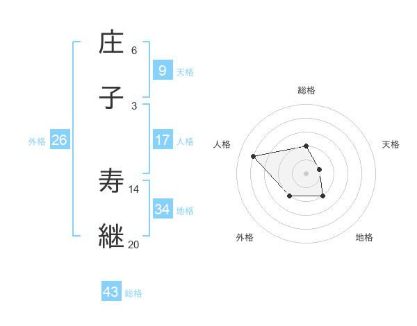 庄子 寿継さんの総格は43画の2点!