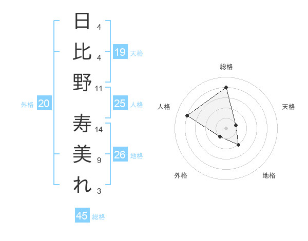 日比野 寿美れさんの総格は45画の4点!