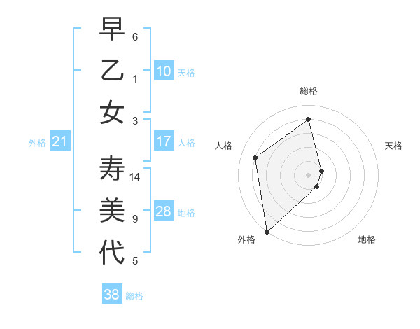 早乙女 寿美代さんを姓名の画数から五運を鑑定